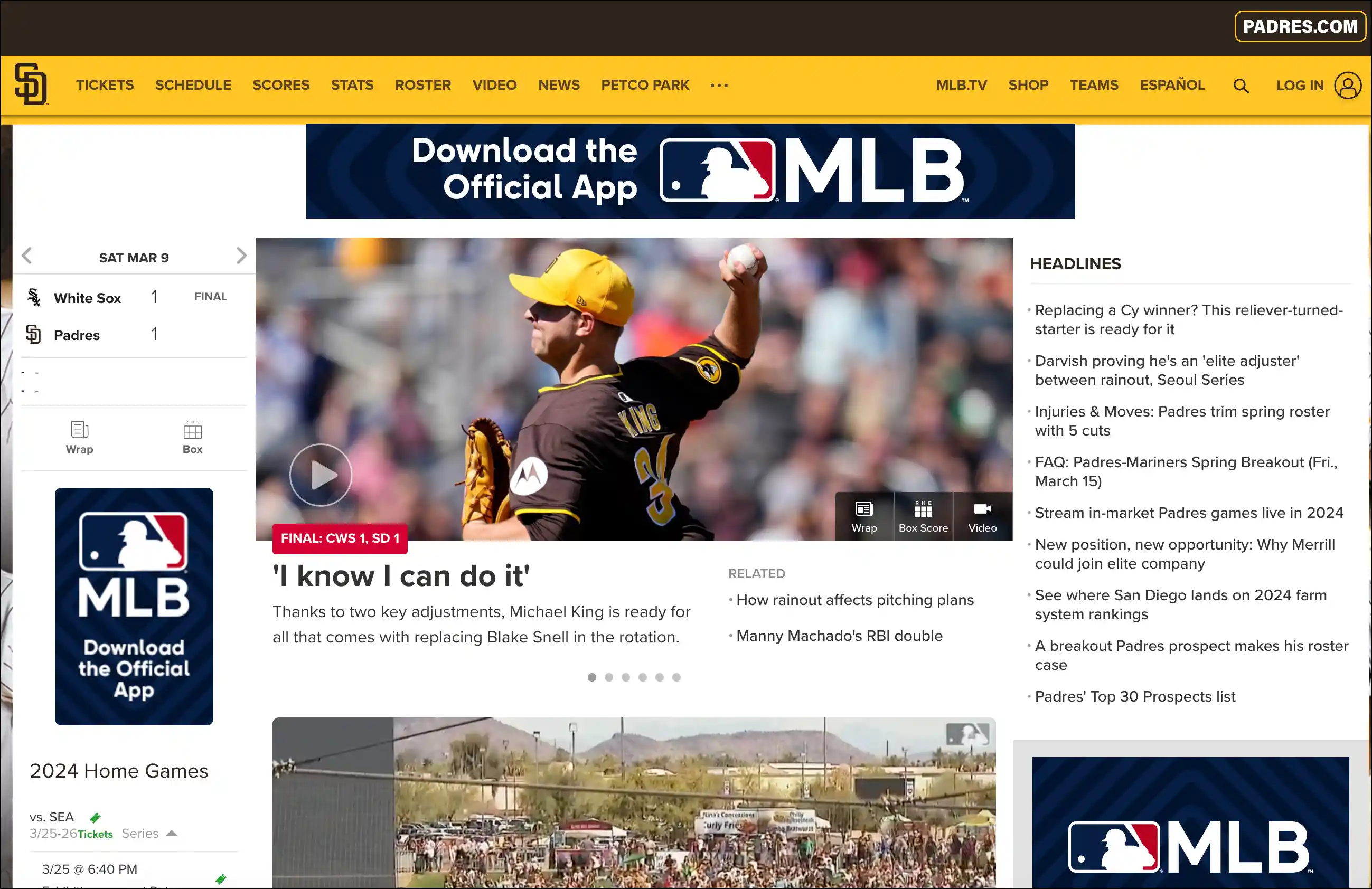 The official website of the San Diego Padres with the most up-to-date information on scores, schedule, stats, tickets, and team news.