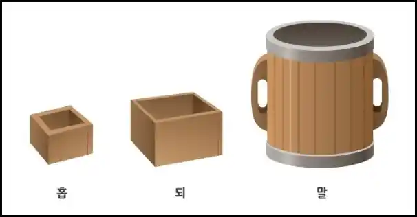이 그림으로 보면 이해가 쉬운데요,. 홉, 되, 말... ㅎㅎ 예전에 자주 사용하던 단위들이잖아요~