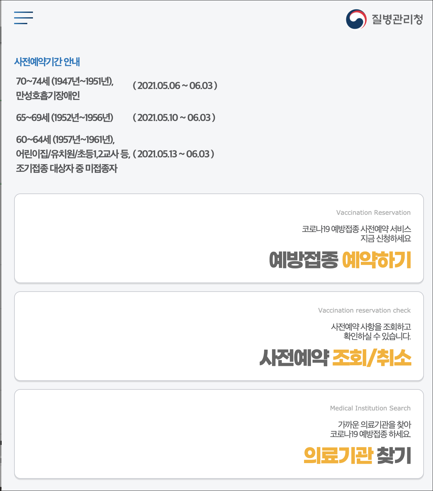 사이트 소개 코로나19 예방접종 사전예약 시스템 (nevr.kdca.go.kr) 아주더운여름날 2021. 5. 16. 08:33 코로나19 예방접종 사전예약 시스템 코로나19 예방접종 사전예약 시스템 ncvr.kdca.go.kr 공유하기 게시글 관리 열무김치밥 저작자표시 (새창열림) When you have faults, do not fear to abandon them. – Confucius '사이트 소개' Related Articles MobiSign (www.mobisign.or.kr) 코로나19 예방접종 사전예약 시스템 (ncver.kdca.go.kr) 씨엘팜 (www.clpharm.com) 미래엔 에듀 (www.mirae-nedu.com)